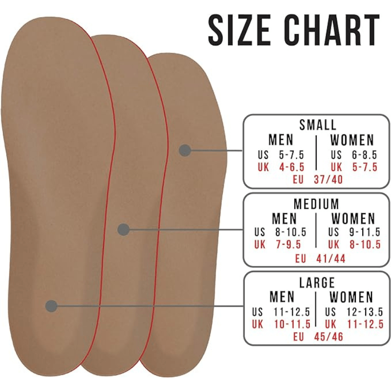Medical grade plastazote foam top cover forms to your feet absorbing shock and pressure as well as reducing friction, which is important for diabetics and people with other sensitive foot disorders. These specially cushioned insoles form to your foot to evenly distribute your weight, supporting your heel, arch, and metatarsal with comfort and balance.